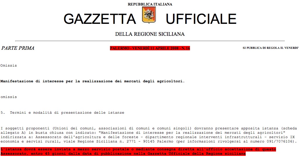 ”Gli agricoltori che vorranno fare parte dei mercati – afferma il dirigente generale del Dipartimento interventi infrastrutturali dell’assessorato, Dario Cartabellotta – saranno obbligati all’accreditamento, una sorta di lasciapassare che verra’ rilasciato solamente a tutti coloro che rispetteranno i requisiti previsti dal bando. Un obbligo che vuole essere testimonianza di sicurezza per i consumatori”.