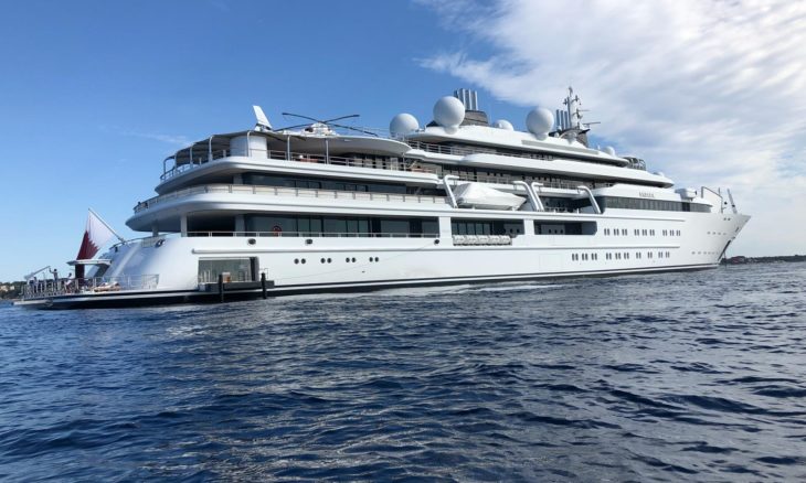 Il panfilo di 124 metri è imponente ed è la “base” di appoggio per le vacanze nel Mediterraneo del ricchissimo Tamim che però non vi viaggia a bordo.