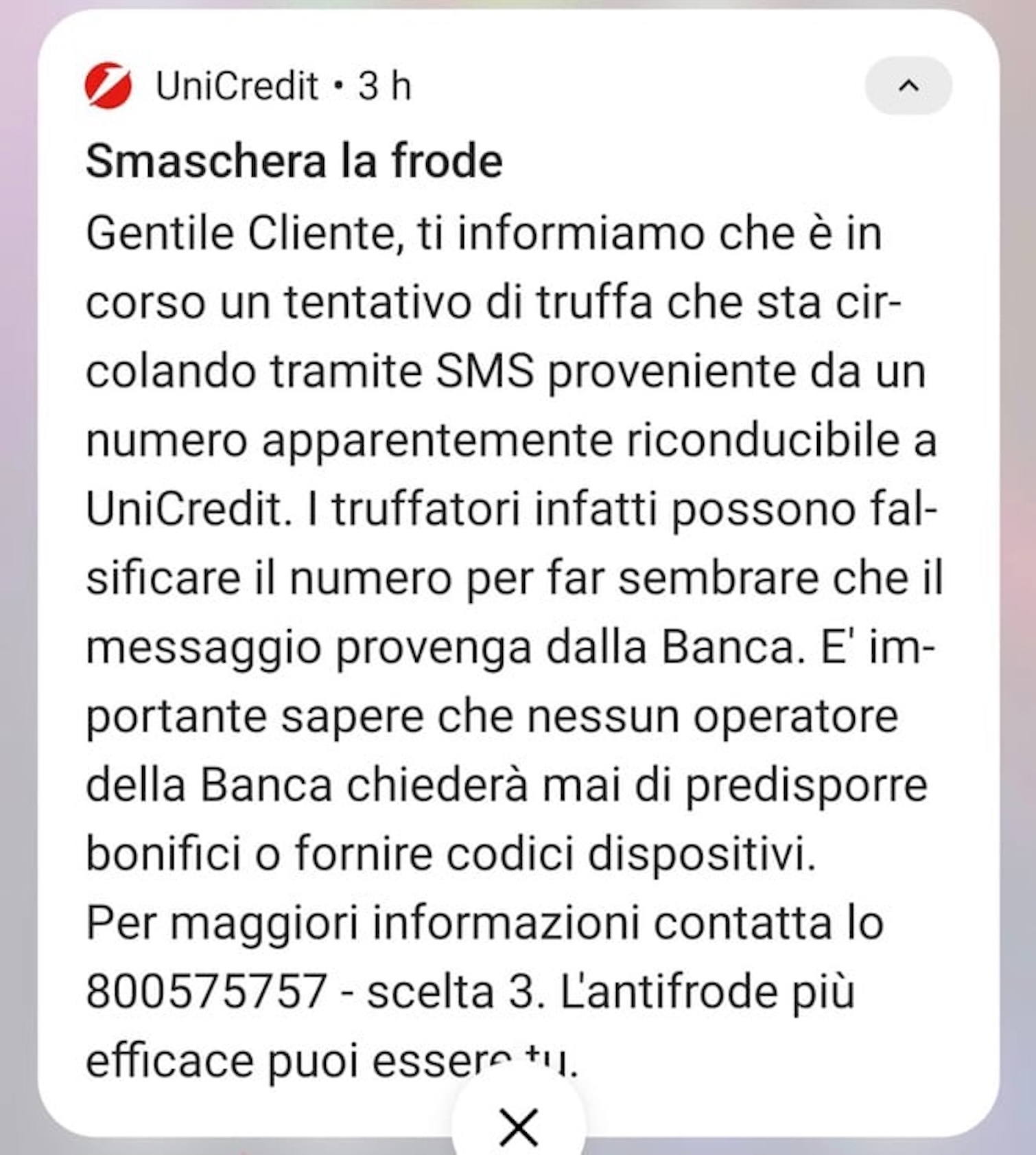 A quanto pare il messaggio rimanda a una pagina web che imita il portale di home banking di Unicredit. Qui viene richiesto di inserire credenziali di accesso, codici OTP o addirittura i dati della carta di credito. Una volta compilati i campi, le informazioni finiscono direttamente nelle mani dei truffatori, che possono così tentare di svuotare il conto corrente o effettuare operazioni non autorizzate.