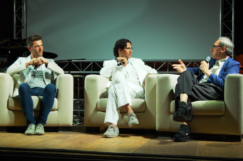 Franco Battiato era come al solito a briglia sciolta ieri sera alla presentazione del talk “Io chi sono?”, in cui si è confrontato con il giovane cantautore ibleo Giovanni Caccamo, da lui prodotto e promosso. .
