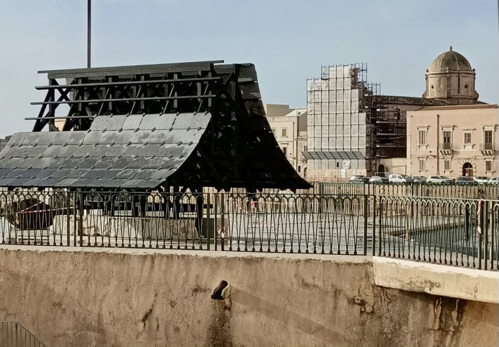 Il primo intervento è situato a Ortigia, nel Belvedere della Turba, una piazzetta recentemente riqualificata e in passato adibita a parcheggio. La trasformazione in spazio urbano aperto ha restituito alla città un nuovo affaccio sul mare e un accesso diretto al fronte di Levante dell’isola. Qui l’architetto svizzero Leopold Banchini ha immaginato un riparo urbano temporaneo.
