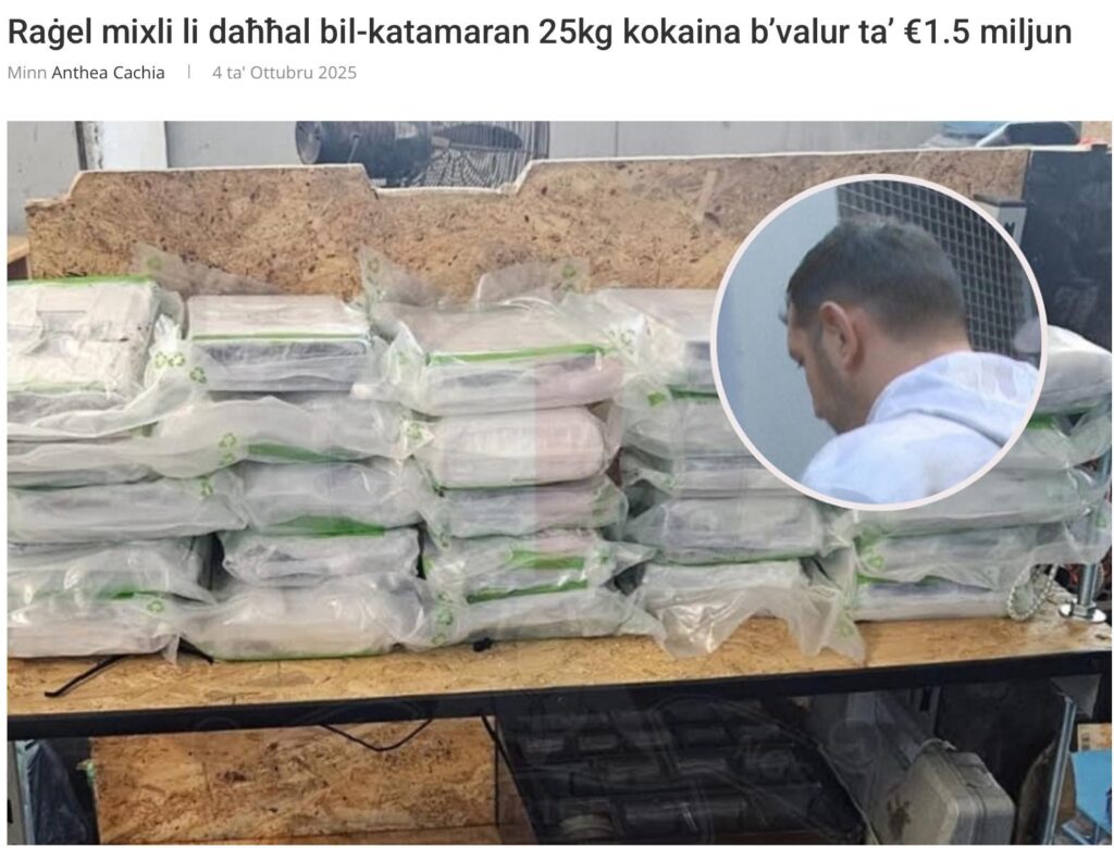 Pozzallo – Un cittadino greco di 38 anni, Kleon Andrikopoulos, è stato posto in custodia cautelare con l’accusa di aver tentato di importare a Malta 25 chili di cocaina, per un valore di mercato stimato di circa 1,5 milioni di euro.