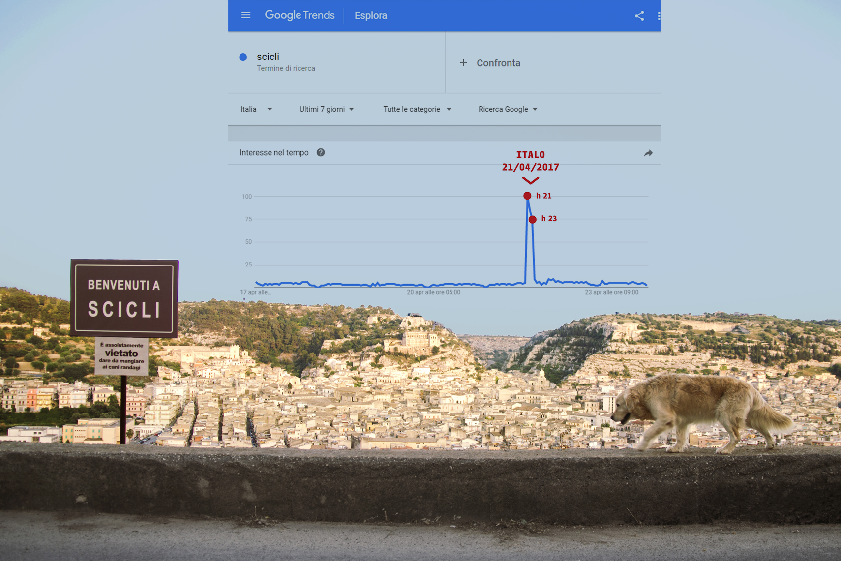 Orbene, venerdì 21 aprile, in prima serata, Rai Uno ha mandato in onda, per la prima volta in chiaro, il film Italo, dedicato al cane di Scicli che andava a messa. L’indomani, il popolo di internet è andato su Google cercando la parola chiave Scicli, come accade in genere solo in estate.