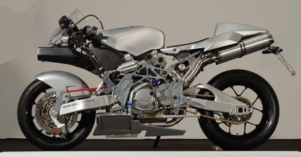 La motocicletta ha la carrozzeria in carbonio a vista, cerchi in carbonio, telaio e forcelle anodizzate nere, cambio elettronico, la scritta C.O.B. (chief on board) sul manubrio.
