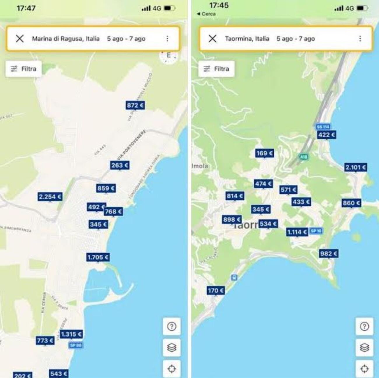 Ragusa – Un raffronto impietoso. E’ quello che Ornella Tuzzolino, già consulente al turismo del Comune di Ragusa nella giunta Piccitto, ha pubblicato in un post che sta facendo molto discutere. In un collage che giustappone i prezzi delle camere d’albergo a Marina di Ragusa con quelle di Taormina, Ornella Tuzzolino mostra come tra Taormina appunto e Marina di Ragusa, per chi volesse pernottare fra il 5 e il 7 agosto, non vi è alcuna differenza.
