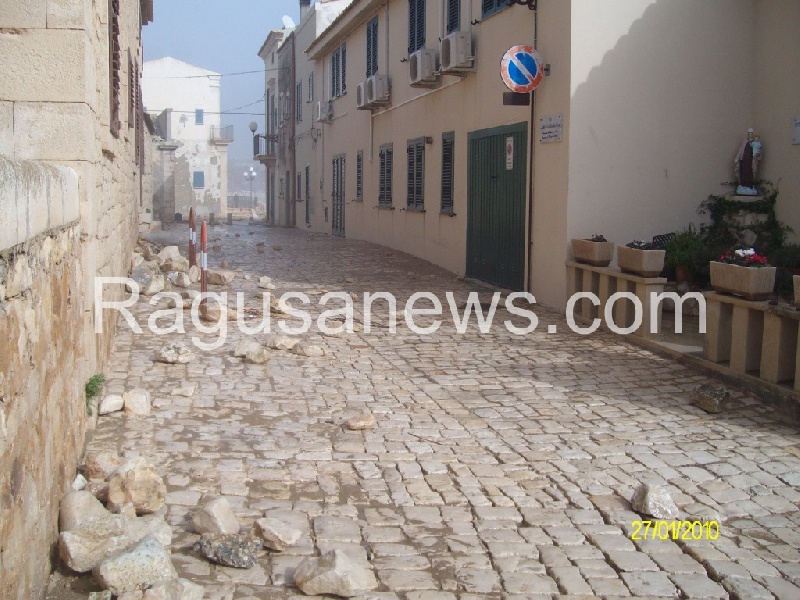 Non è transitabile la strada che collega Marina di Modica a Maganuco e che si sviluppa a monte della scogliera, in quanto invasa da detriti e grossi massi trasportati dalla mareggiata.