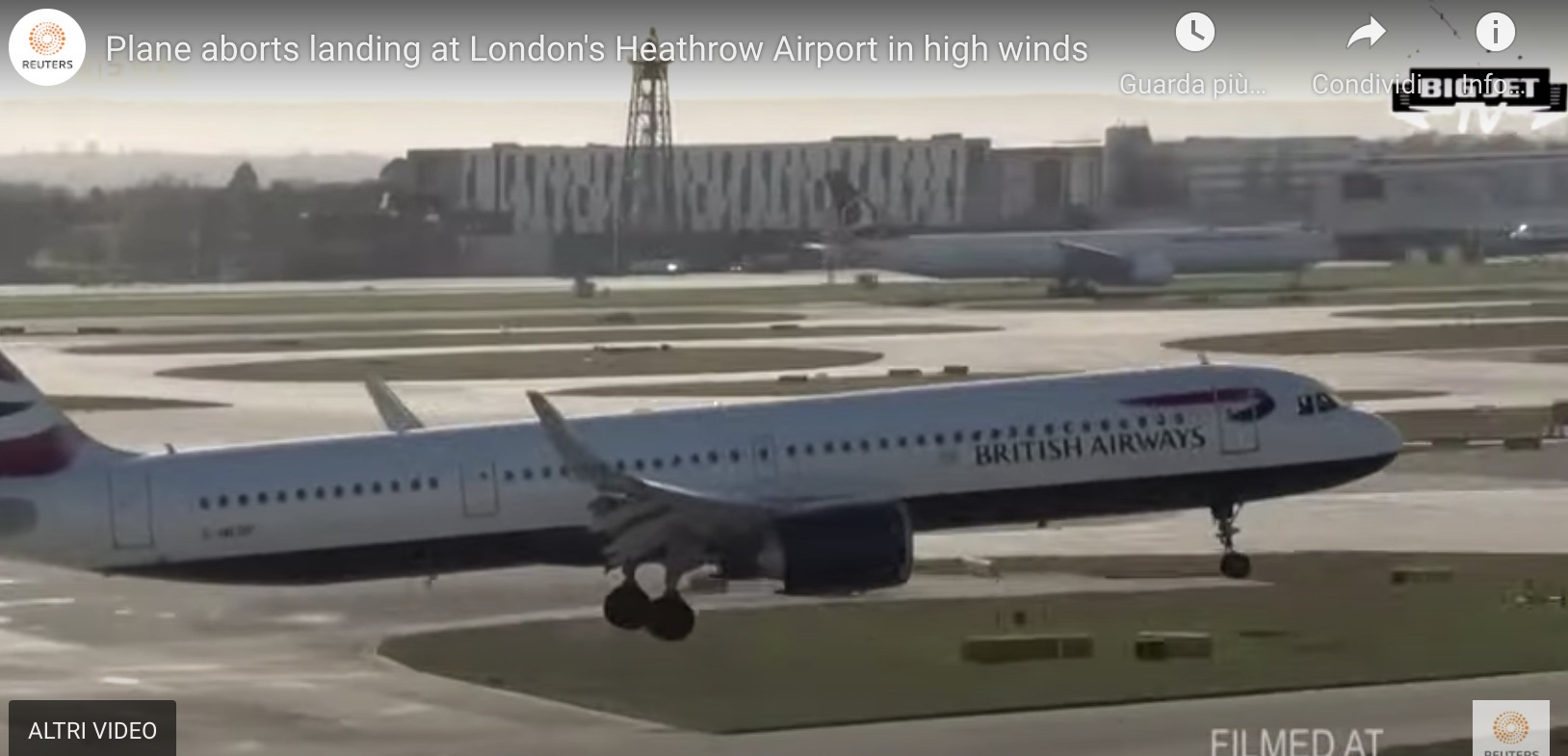 Londra – Un Boeing 737 delle British Airways proveniente da Aberdeen in Scozia, ha fallito a causa del forte vento l’atterraggio all’aeroporto di Heathrow a Londra. Il pilota ha avuto il sangue freddo di ridare potenza ai motori con il velivolo che ha subito ripreso quota.