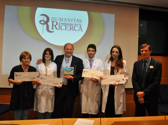 Per il secondo anno consecutivo, Gerry Scotti “adotta” quattro nuovi giovani medici e ricercatori di Humanitas che hanno dimostrato il proprio talento facendo esperienze anche all’estero, in strutture prestigiose, e pubblicando i propri studi su riviste scientifiche internazionali. Grazie agli assegni di ricerca messi a loro disposizione per un anno dal presentatore, Angela Ceribelli, Silvia D’Alessio, Giuseppe Favacchio e Manuela Quintavalle potranno approfondire i loro studi, volti a chiarire i meccanismi dell’autoimmunità, il ruolo delle “forbici molecolari” e dei “piccoli piedi” che consentono al cancro di dare metastasi, e a migliorare le cure per il diabete di tipo 2. La cerimonia di consegna degli assegni si è svolta questa mattina in Humanitas, in un Auditorium gremito di medici e ricercatori.