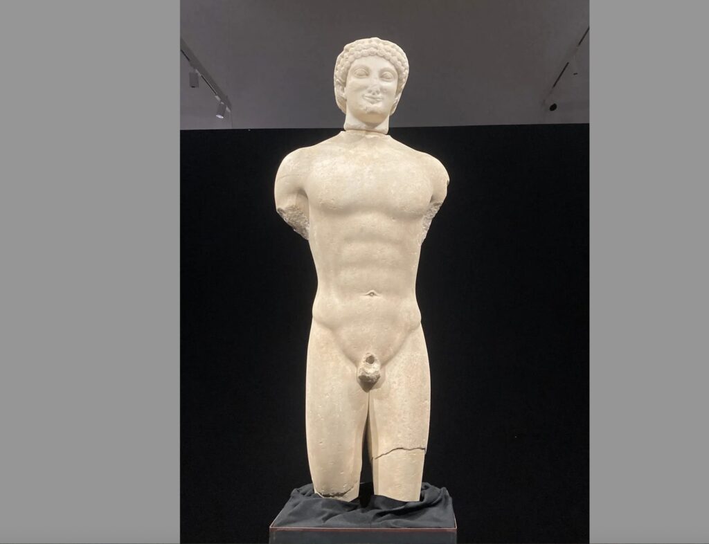 Catania – È tornato a Catania il Kouros, lo straordinario reperto frutto della ricomposizione tra la testa della celebre Collezione Biscari del Castello Ursino e il torso di proprietà del Museo Paolo Orsi di Siracusa. Ad aprire il nuovo allestimento al Polo museale Santa Chiara è stato il sindaco Enrico Trantino, insieme al presidente del Consiglio comunale Sebastiano Anastasi, al direttore del Parco archeologico di Siracusa Carmelo Bennardo, alla Soprintendente di Catania Ida Buttitta e al direttore della direzione Cultura Paolo Di Caro. Il Kouros, incastonato in una suggestiva quinta nera che ne esalta la forza simbolica e visiva, sarà esposto per un anno, rappresentando un punto di riferimento culturale e identitario per l’intera città.