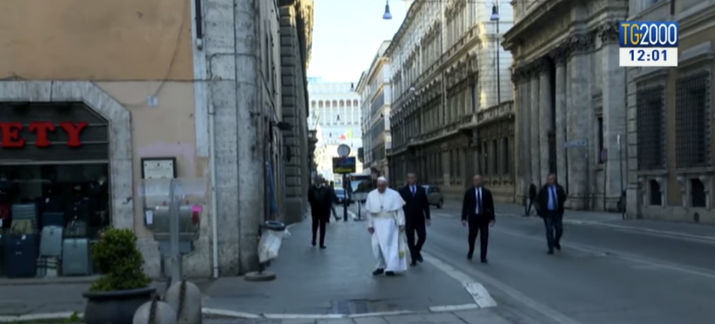 Il VIDEO di Papa Francesco che cammina da solo per le strade di Roma