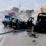 Sciacca – Incidente stradale sulla Palermo- Sciacca. Uno scontro frontale tra due auto, una Fiat Tipo e una Dacia, si è verificato all’ingresso della statale al chilometro 1+400, poco dopo via Ernesto Basile. L’impatto si è rivelato violentissimo: uno dei mezzi è finito contro il guardrail ed è poi andato in fiamme.