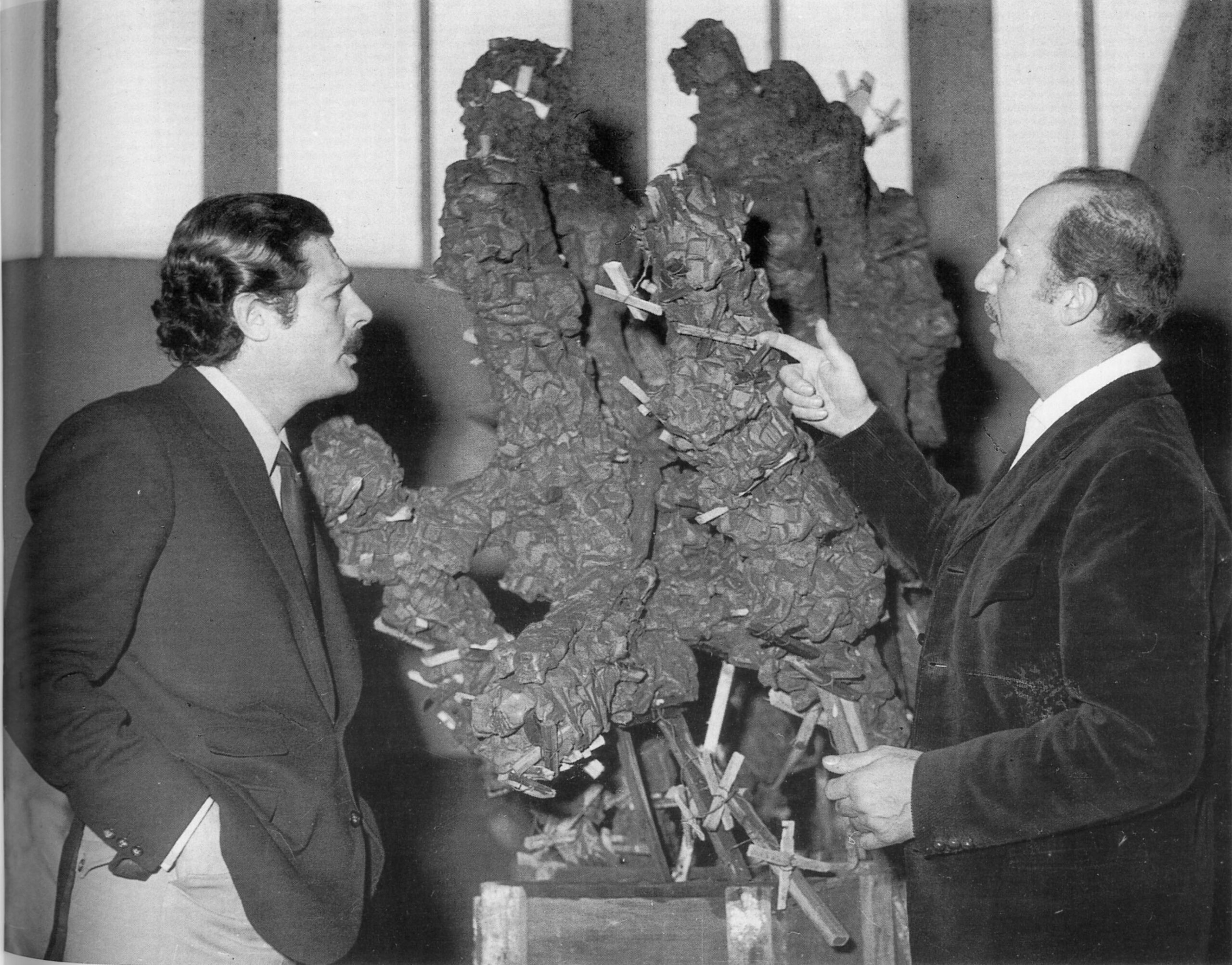 Eloquente, per comprendere l’excursus formale di una vita lunga e feconda di opere, è il ritratto che di Mastroianni traccia lo storico dell’arte Maurizio Calvesi: “Fin dagli anni Cinquanta – scrive Calvesi – Mastroianni alterna, a lucide forme astratte, geometricamente definite come piani che riflettono la luce, zone matericamente informali, scabrose e intrise d’ombra in una grandiosa evocazione di processi generativi e formativi di quasi vulcanica e fragorosa – la voce della materia – irruenza. I ricordi dello scultore coincidono: prima della guerra, ha scritto, “io avevo studiato maestri antichi: Fidia, Michelangelo, Donatello, Piero della Francesca, Masaccio. Ora incominciai a studiare i maestri moderni, in primo luogo Boccioni, l’artista che ha rinnovato l’arte italiana. Non potevo più riposare sugli allori. Dovevo rischiare, a tutti i costi”. In questo stesso piacere del rischio, della sfida, si manifesta una personalità che è geneticamente erede dello slancio futurista, slancio che aveva tuttavia qualcosa di connaturato, in lui, cioè di proprio dell’indole stessa, impetuosa del personaggio e che risultava persino da atteggiamenti pratici, come l’amore per le automobili e la velocità”.