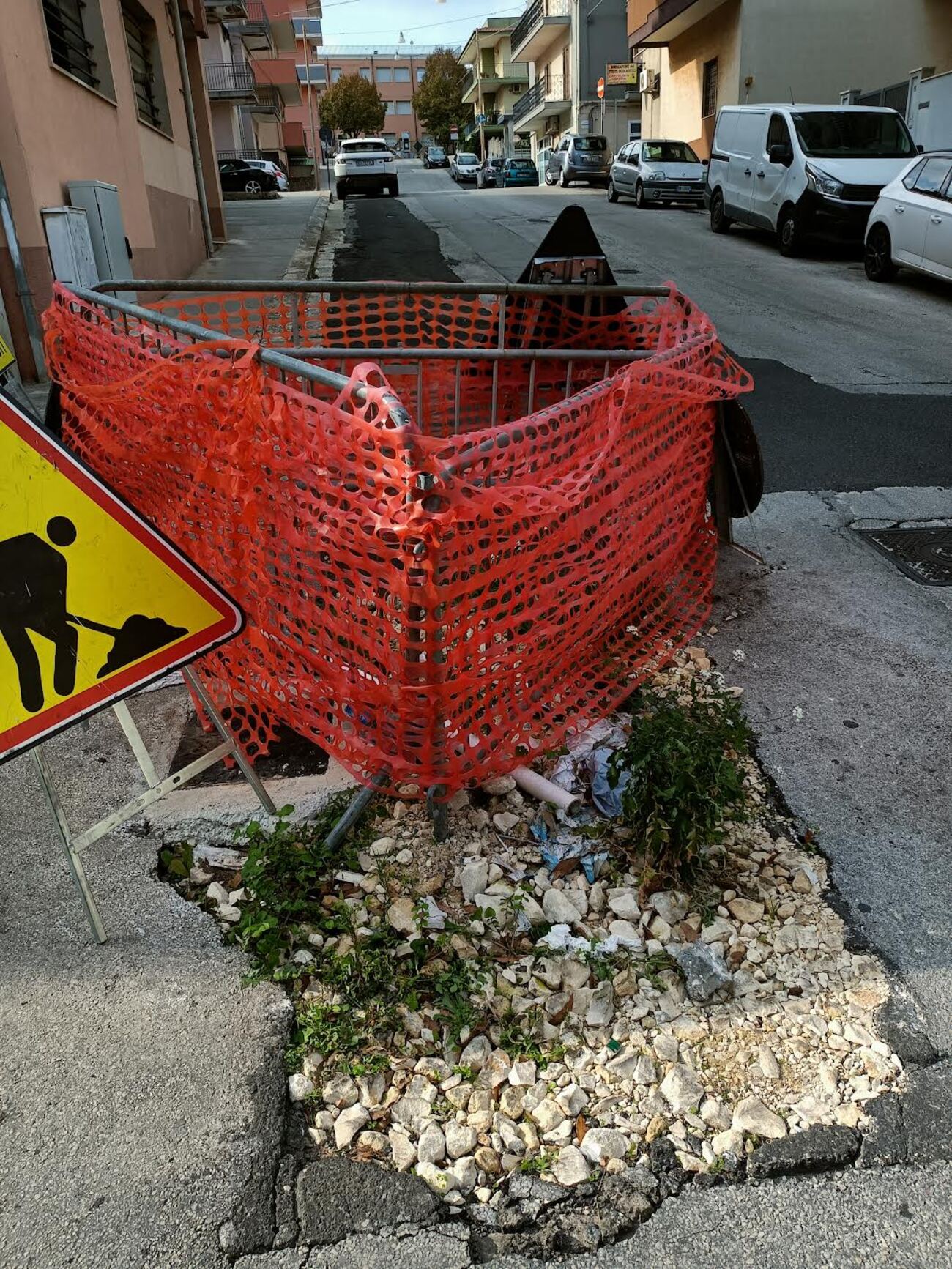 A Ragusa, la mega buca in via del Melograno, qualche auto ci finisce dentro