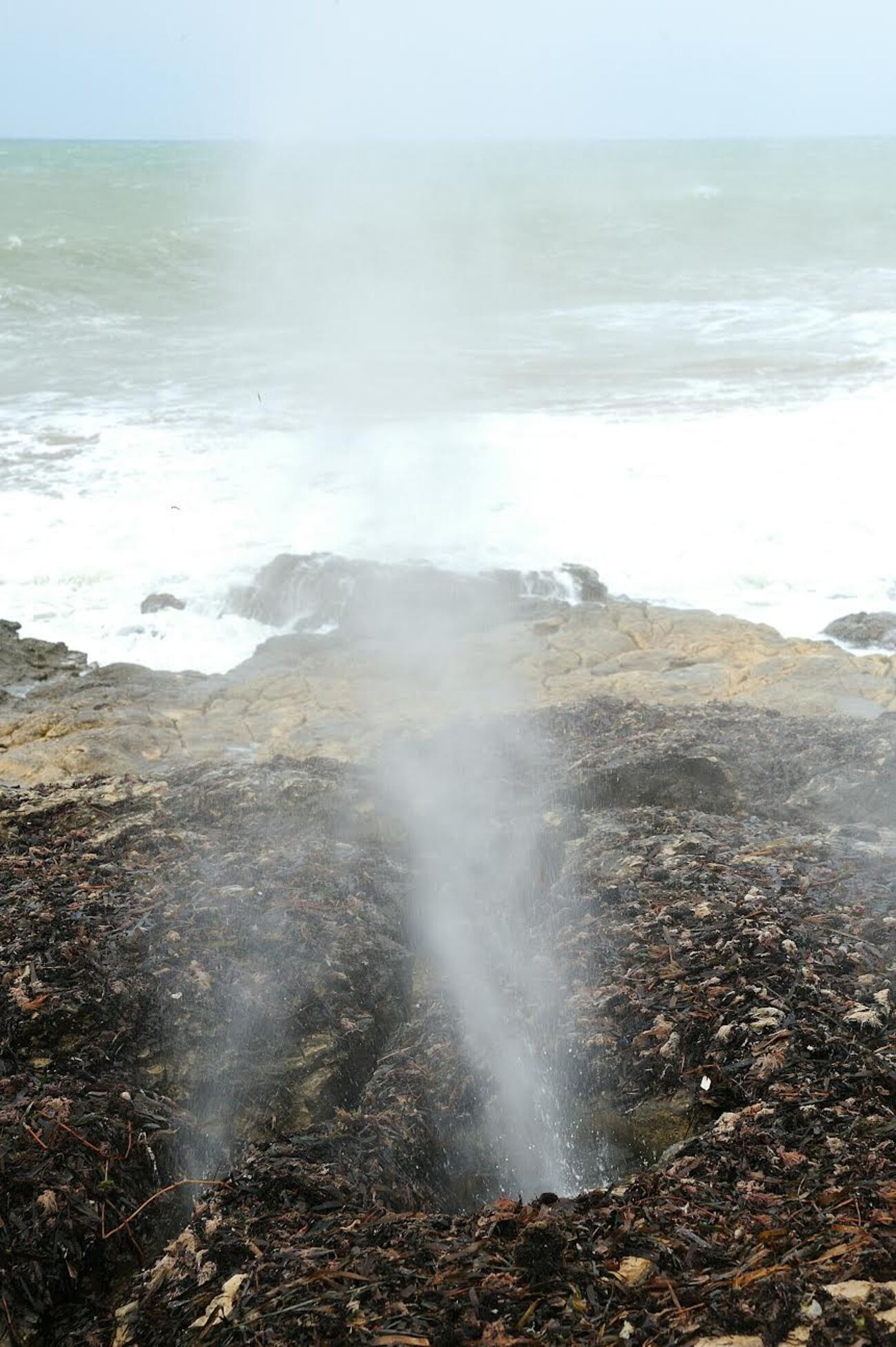 In quel punto la scogliera è alta circa 3-4 metri e l’effetto risulta particolarmente scenografico. Inoltre è particolarmente facile individuare il sito per la cospicua presenza di alghe espulse durante il verificarsi del fenomeno.