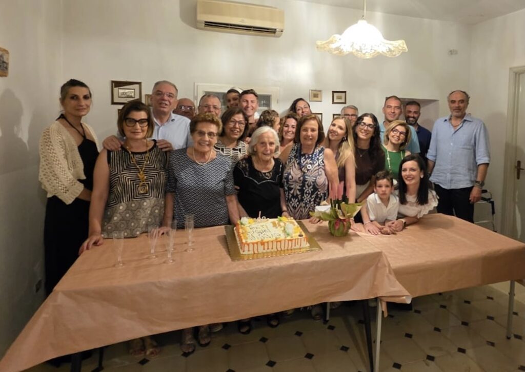 Lei è Carmela Mugnieco, vedova di Rosario Giunta, e l’hanno festeggiato le figlie, i nipoti e i pronipoti. Auguri!