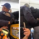 Nel video si vede un agente trascinare un uomo fuori dal sedile con le mani dietro la schiena, seguito da altri compagni. Un terzo ha opposto resistenza, rifiutando l’arresto e urlando contro i poliziotti. La colluttazione è proseguita tra i sedili, con l’uomo che cercava di liberarsi, inveendo contro gli agenti: “State facendo un errore se venite a prendermi”.