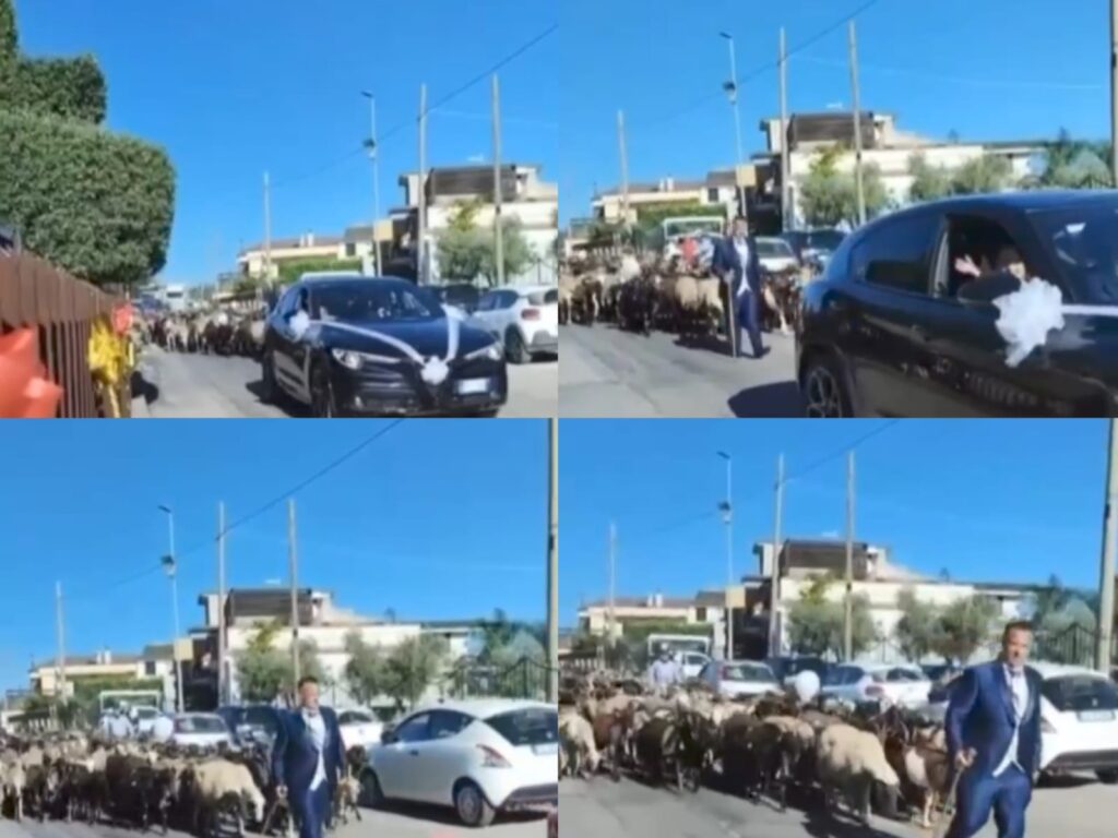 Lo sposo Nicola Marto ha deciso di recarsi in chiesa accompagnato da tutto il suo gregge, facendo sfilare le sue pecore, addobbate per l’evento con fiocchi e palloncini, per le strade della città con l’auto davanti che li precedeva. Poi è arrivata anche la sposa Mirela.