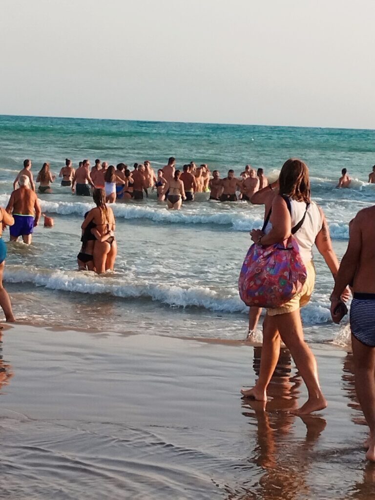 Quel maledetto pomeriggio io e la mia famiglia ci trovavamo in spiaggia sulla battigia, io nello specifico ero intento a giocare con mio figlio di anni 9, quando verso le ore 18:00 alzando gli occhi verso il mare, notavo una donna al largo agitare le braccia e in evidente stato di difficoltà in quanto sopraffatta dalle onde. Immediatamente senza pensarci un secondo, urlando alle persone a me vicine di chiamare i soccorsi, mi butto in mare insieme ad altre due persone in direzione della donna. Un soccorritore arriva prima di me dalla donna, entrambi trovano riparo in una boa aggrappandosi alla stessa, l’altro soccorritore nonché marito della donna in difficoltà veniva trascinato dalle correnti e in balia delle onde chiedeva aiuto in quanto non avendo più forze non riusciva a rientrare, a tal punto visto che la donna ormai era al sicuro, mi dirigevo più al largo dove vi era l’uomo in difficoltà, appena raggiunto lo stesso mi implorava di aiutarlo in quanto ormai stremato, da qui è iniziato il mio calvario, in quanto provavo a tirare verso riva l’uomo, ma le correnti e le onde che ci portavano sott’acqua rendevano vani i miei sforzi. Non avendo più fiato e forze spingevo la persona verso il molo Andre Doria così da poterlo sfruttare come appiglio, nel contempo la corrente, le spinte date all’uomo e le onde mi portavano ancora più a largo, fin quando ho deciso che dovevo cercare di raggiungere la riva in quanto ormai stremato, senza fiato e senza forze. Nuotavo senza mai fermarmi, riuscivo a mala pena a guadagnare pochi metri per poi essere travolto dalle onde furiose che quel pomeriggio caratterizzavano il mare,non riuscivo ad andare avanti, ormai sentitomi spacciato guardavo un’ultima volta la spiaggia dove pochi minuti prima avevo lasciato mia moglie e mio figlio pensando che non li avrei più rivisti. All’improvviso dal nulla, due forti onde invece di coprirmi, mi spingevano verso la riva così toccavo il fondo del mare e in quel momento dopo aver fatto due passi due persone ( proprio come nella foto da voi pubblicata) mi portavano in spiaggia dove vi era già personale sanitario.