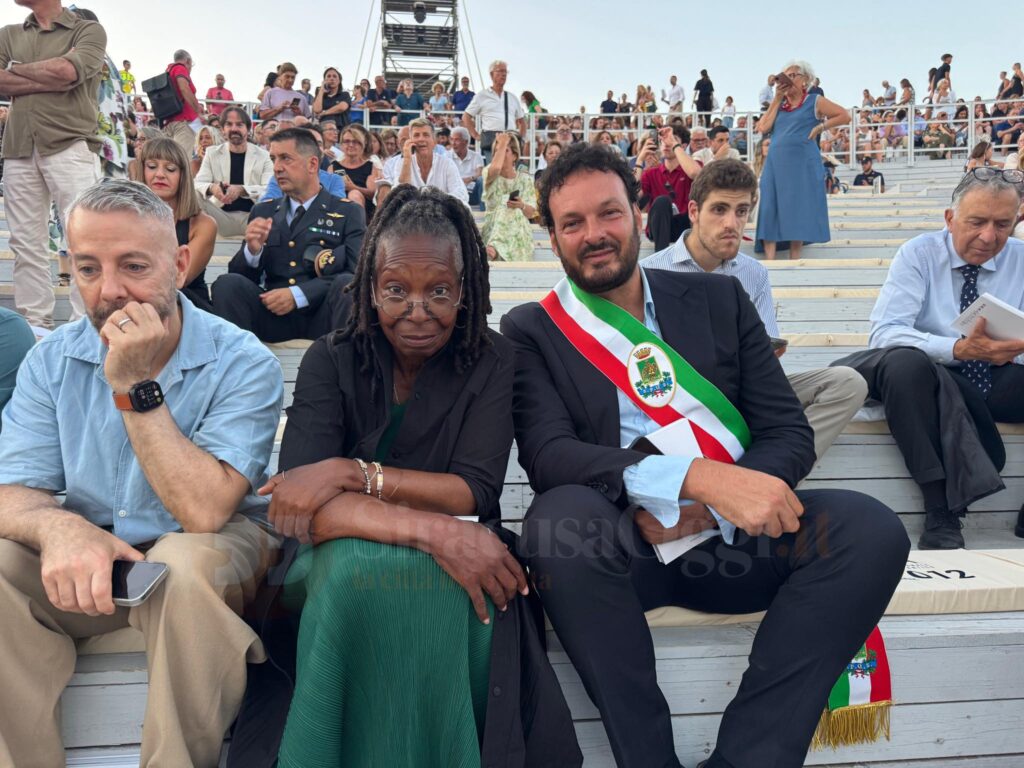 Siracusa – Whoopi Goldberg è stata due giorni fa spettatrice d’eccezione per la prima de “L’Iliade” di Giuliano Peparini al Teatro Greco di Siracusa. L’attrice, ormai siracusa d’azione, ha assistito allo spettacolo accanto al sindaco Francesco Italia.